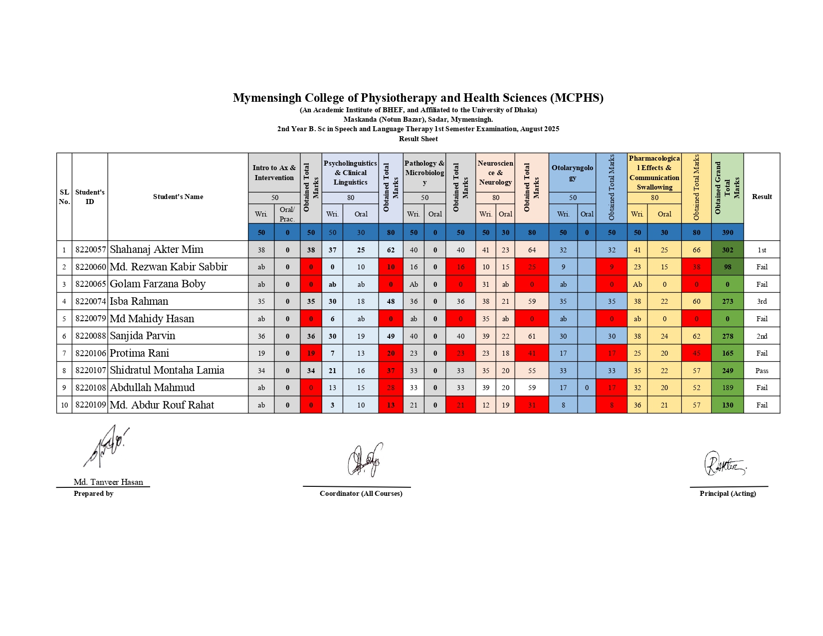 Result Sheet_1st Semester exam 2nd Batch Aug_25_ MCPHS Tuesday, September 30, 2025